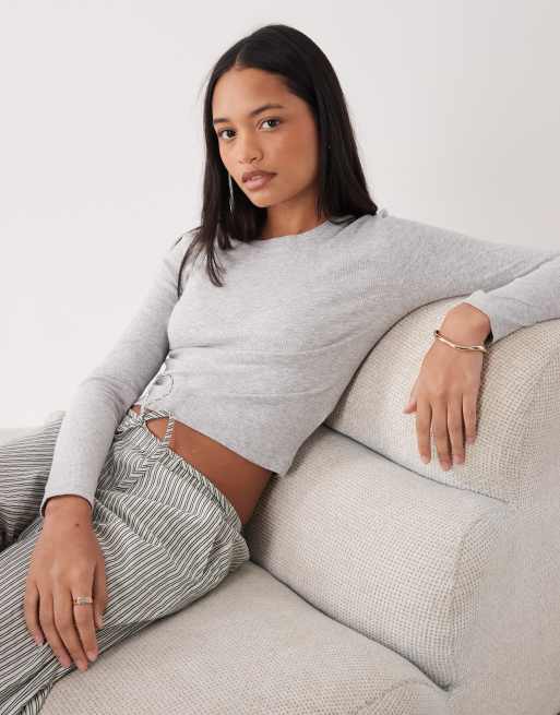 Camiseta gris jaspeado de manga larga de algodón de Brave Soul