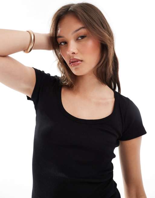 Camiseta negra con cuello ancho de canalé de Brave Soul