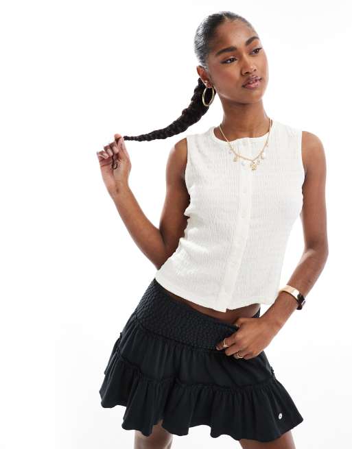 Chaleco color crema abotonado de tejido texturizado de Brave Soul