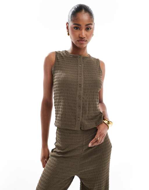 Chaleco marrón abotonado de tejido texturizado de Brave Soul (parte de un conjunto)