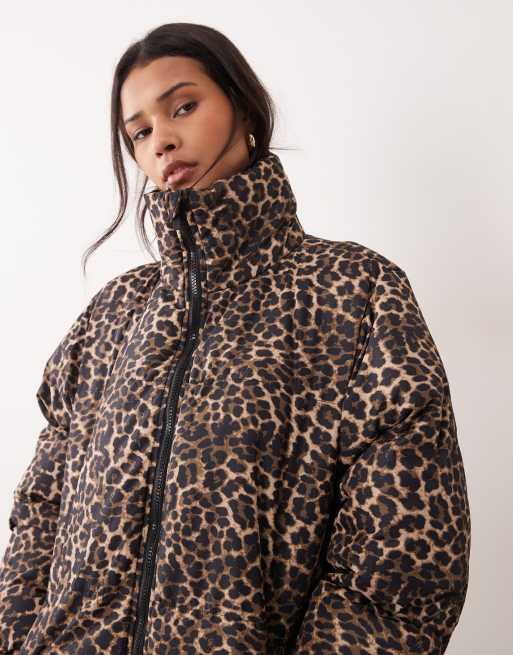 Chaqueta acolchada con capucha, estampado de leopardo y bolsillos de Brave Soul