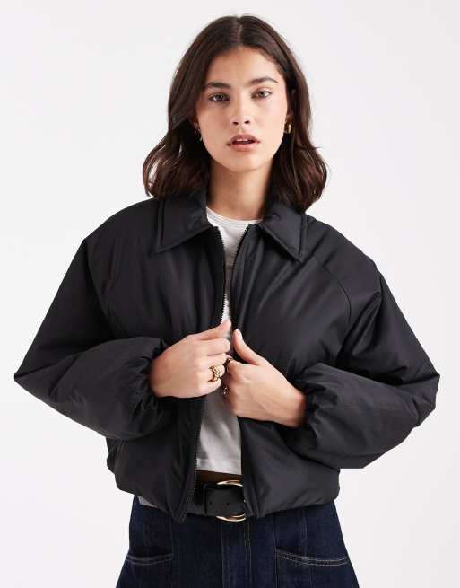 Chaqueta bomber corta negra acolchada con solapas de Brave Soul