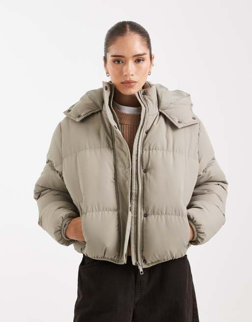 Chaqueta de plumas corta verde salvia con capucha de Brave Soul