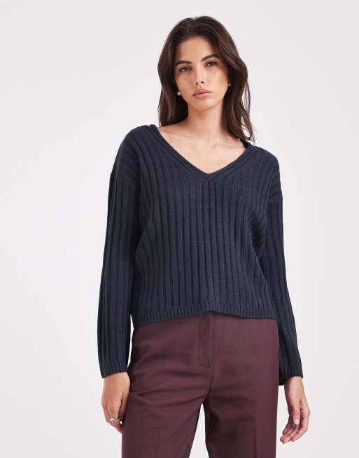 Jersey azul marino con cuello de pico de canalé de Brave Soul