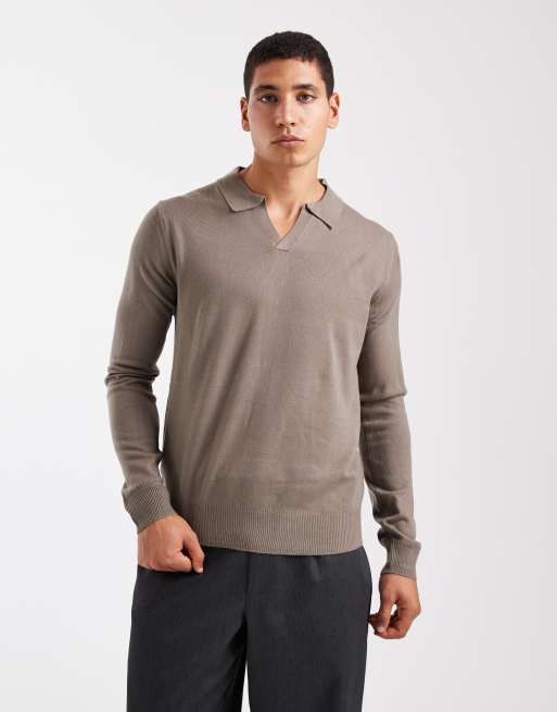 Jersey gris con cuello de pico con solapas de punto de Brave Soul