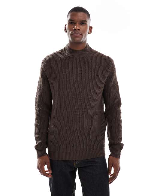 Jersey marrón chocolate con cuello redondo de punto de canalé de Brave Soul