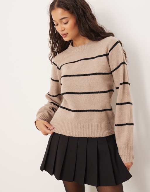 Jersey marrón visón a rayas negras con cuello redondo de punto de Brave Soul