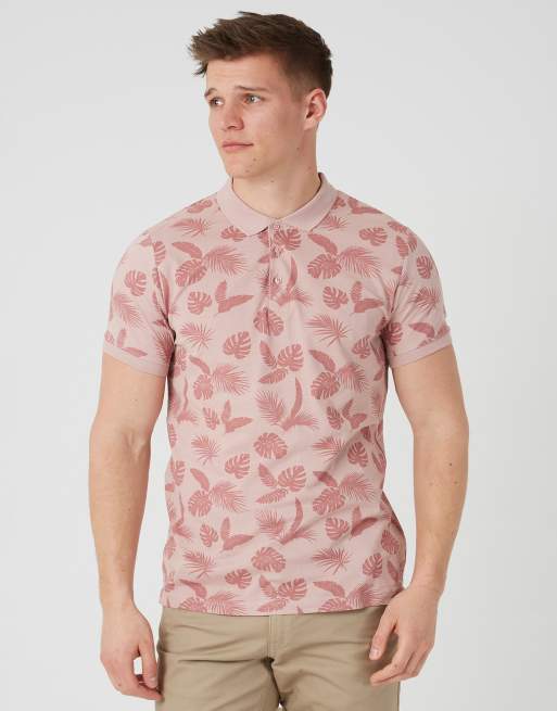 Polo rosa con estampado de hojas de algodón de Brave Soul