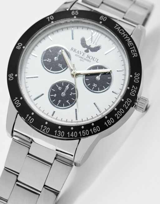 Reloj de pulsera plateado grueso de Brave Soul