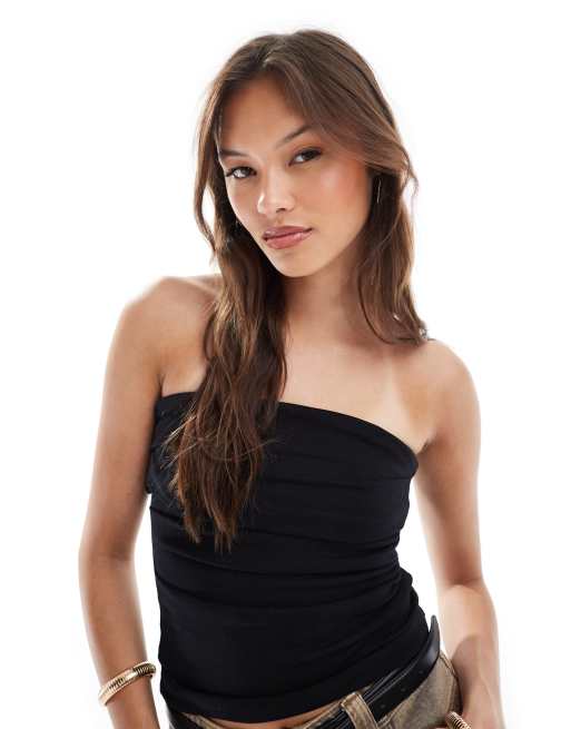 Top negro con escote palabra de honor de punto de algodón de Brave Soul