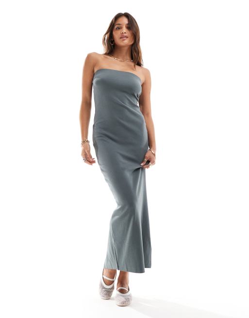 Vestido midi gris ajustado sin tirantes de Brave Soul