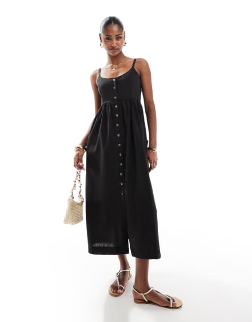 Vestido midi negro abotonado de tirantes de Brave Soul