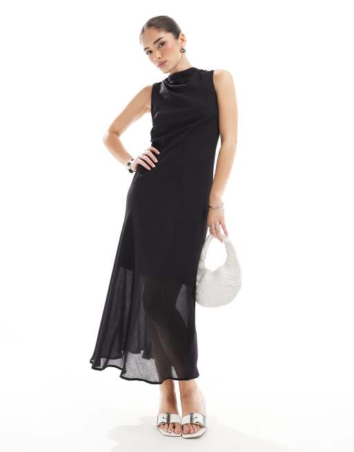Vestido midi negro sin mangas con cuello desbocado de Brave Soul