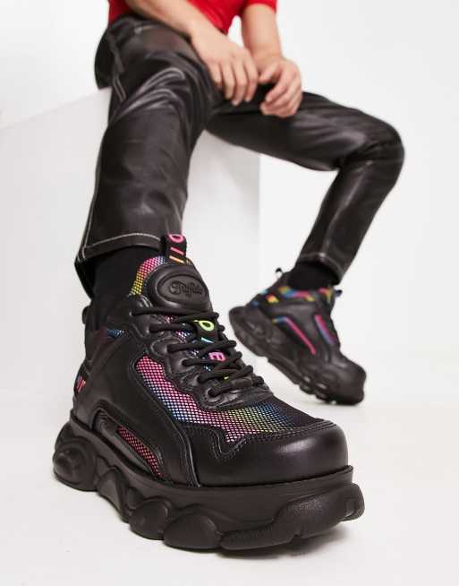 Zapatillas de deporte negras con suela gruesa y detalle estilo arcoíris Vegan Cloud Chai de Buffalo