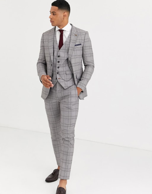 Traje de corte ajustado a cuadros estilo retro en marrón de Burton Menswear