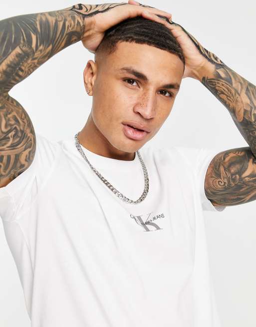 Camiseta blanca con monograma pequeño en el pecho de Calvin Klein Jeans