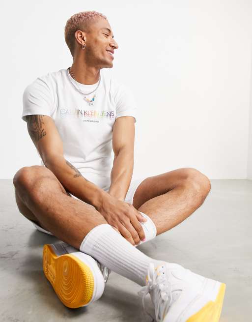 Camiseta blanca entallada con logo de arcoíris Pride de Calvin Klein Jeans