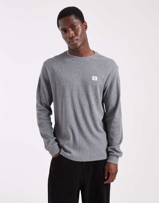 Camiseta gris de manga larga con parche del logo de tejido gofrado de Calvin Klein Jeans