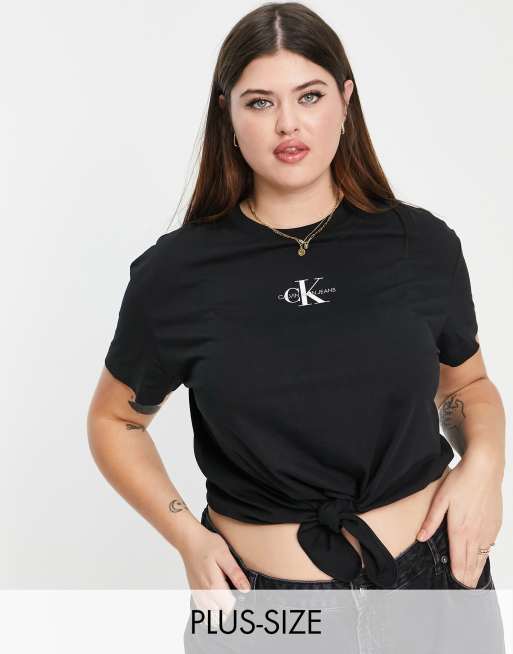 Camiseta negra con logo distintivo y lazada de punto de Calvin Klein Jeans Plus