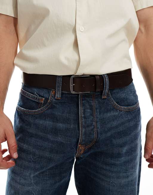 Cinturón marrón oscuro clásico plano de cuero de Calvin Klein Jeans