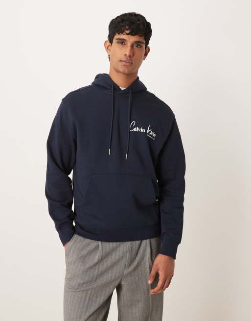 Sudadera azul marino con capucha y gráfico de Calvin Klein Jeans