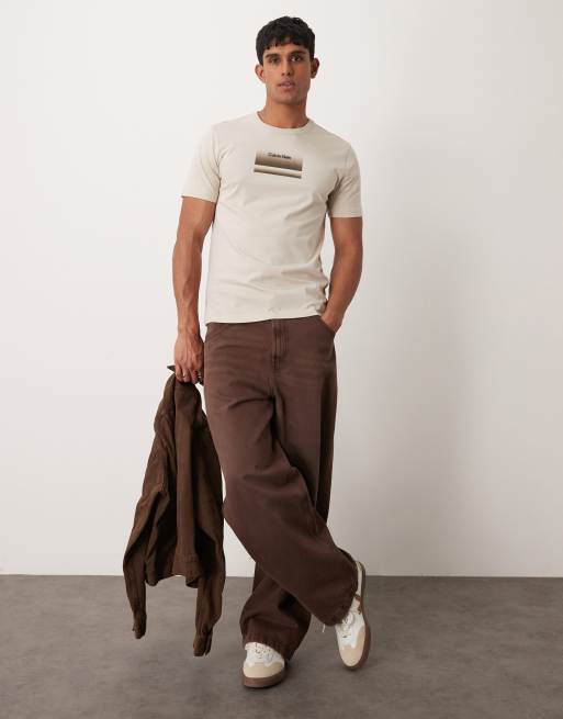 Camiseta beis con logo degradado en el pecho de Calvin Klein