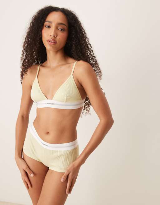 Conjunto de lencería amarillo pastel de canalé de modal de Calvin Klein