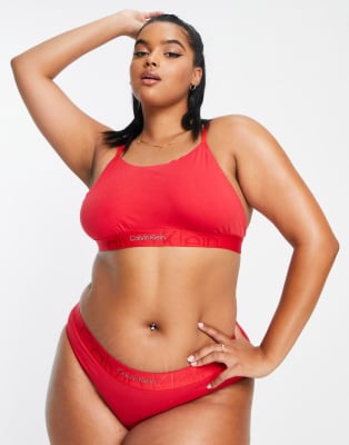 Conjunto de lencería rojo con logo grabado de mezcla de algodón de Calvin Klein Curve