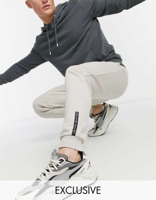 Joggers color piedra teñido con bajos ajustados y logo vertical en la pernera exclusivos en ASOS de Calvin Klein