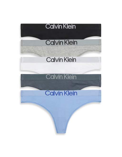 Pack de 5 tangas de color negro, gris, blanco y azul de algodón CK Cotton de Calvin Klein