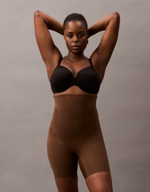 Pantalones cortos marrones moldeadores firmes elásticos por encima del vientre Stay Put Stretch Shapewear de Calvin Klein