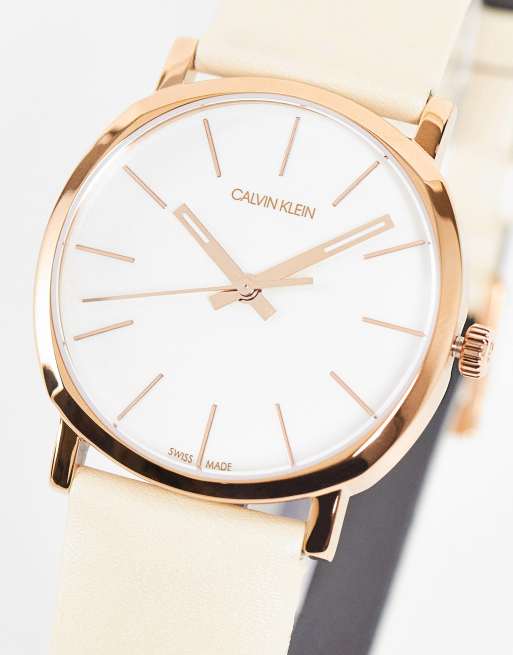 Reloj dorado con correa beis de Calvin Klein