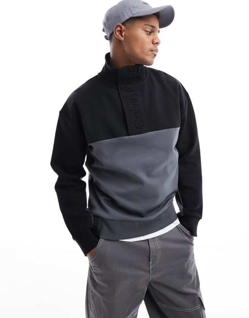 Sudadera negra con cremallera corta con logo en relieve y acabado texturizado de Calvin Klein