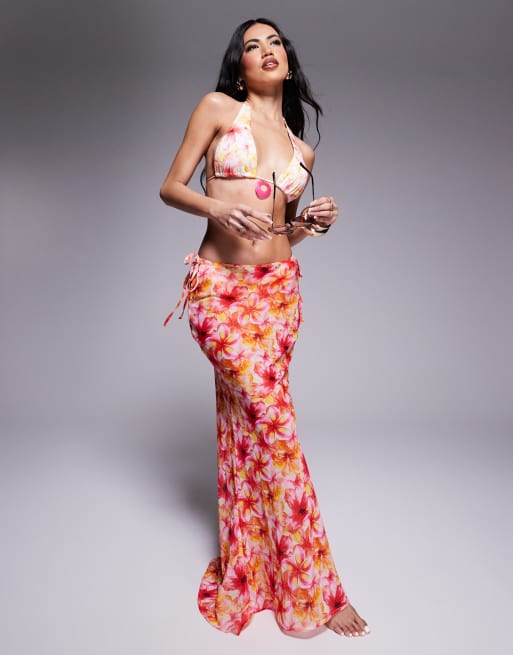 Falda playera larga con estampado floral abstracto de georgette de poliamida de Candypants