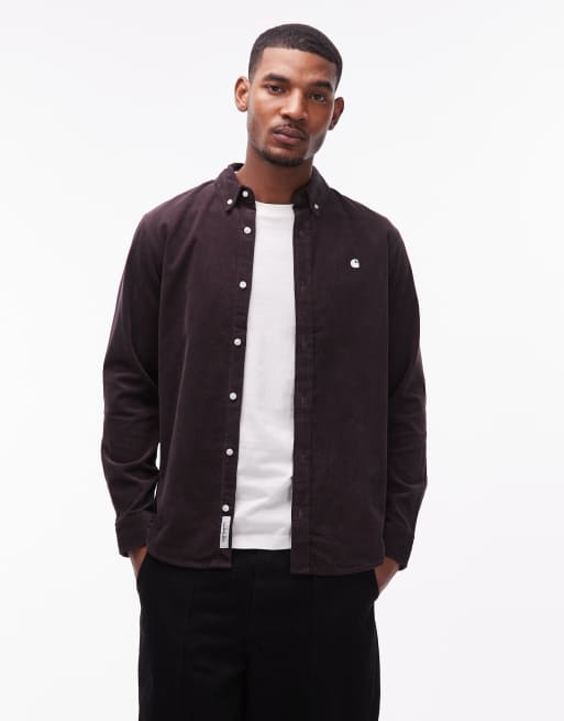 Camisa marrón oscuro de manga larga de pana Madison de Carhartt WIP