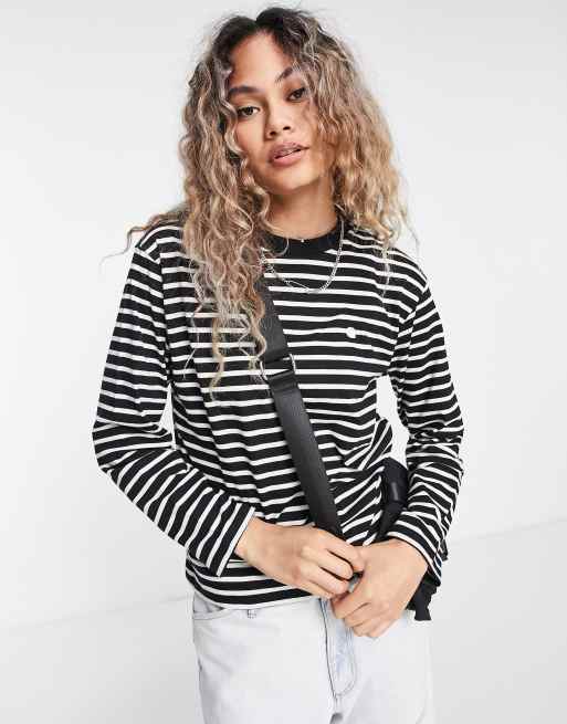 Camiseta blanca y negra a rayas extragrande de manga larga de Carhartt WIP
