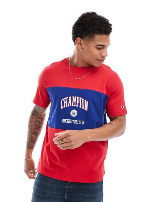 Camiseta azul marino y roja con diseño universitario color block Rochester de Champion