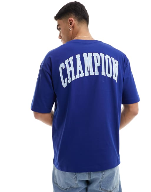 Camiseta azul oscuro con logo estampado en la espalda de Champion