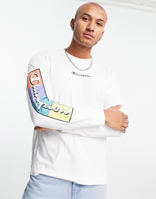 Camiseta blanca de manga larga con detalle estampado de Champion