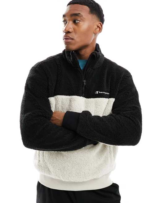 Sudadera beis y negra con media cremallera de Champion