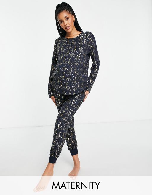 Pijama azul marino con diseño metalizado de renos de Chelsea Peers Maternity