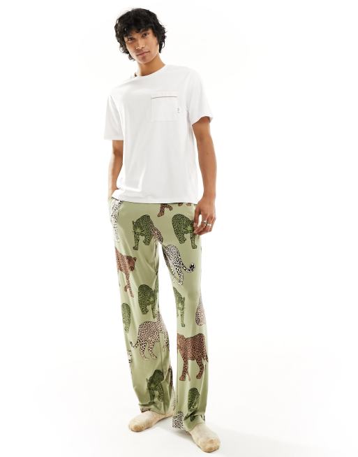 Pijama caqui de camiseta y pantalones con estampado de leopardos de Chelsea Peers