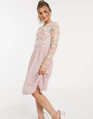 Vestido midi de encaje con bordados en rosa de Chi Chi London