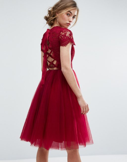 Vestido midi de tul con espalda acordonada de Chi Chi London