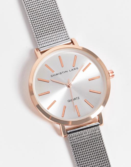 Reloj plateado y dorado rosa con pulsera de malla para mujer de Christin Lars