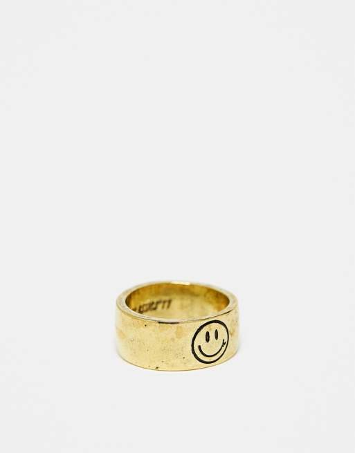 Anillo dorado liso con detalle de cara feliz de Classics 77