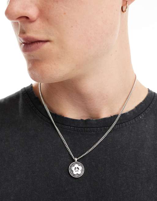 Collar plateado con colgante de flor y símbolo de la paz de Classics 77