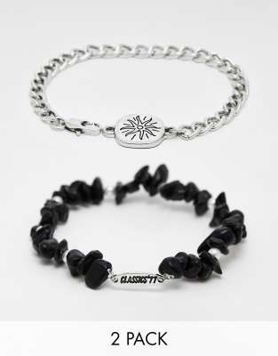Pack de 2 pulseras plateadas con diseño de cuentas y de cadena con charm de sol de Classics 77