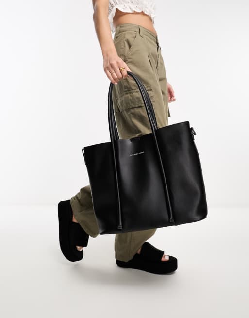 Bolso tote negro suave con correa de bandolera de Claudia Canova