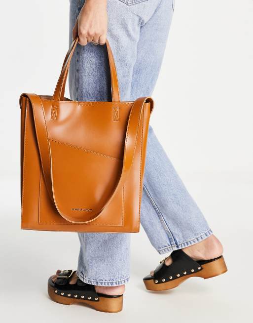 Bolso tote tostado con solapa diagonal de Claudia Canova